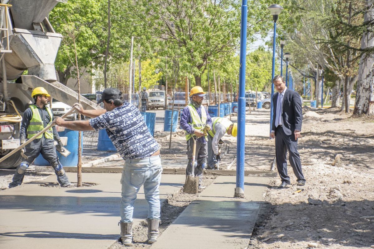 Se realiza el hormigonado de la vereda sur de la plazoleta luego de haberse terminado el sector norte del espacio verde entre las calles Sarmiento e Italia, que permitirá la continuidad de tareas con la misma estética empleada en las plazoletas ya readecuadas del Paseo, entre Sarmiento y Avda. Roca y entre esta última y calle España.