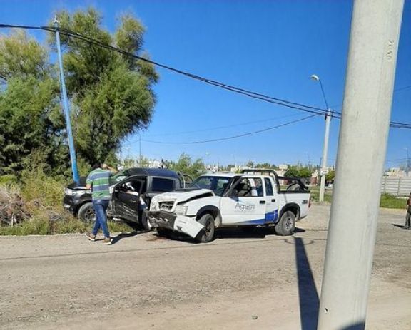 El choque se produjo entre una camioneta Ford Ranger color negra y una blanca, perteneciente a la empresa Aguas Rionegrinas.