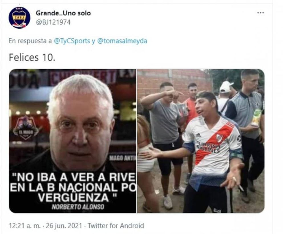Hoy 26 de junio se cumplen diez años de aquél fatídico día para los millonarios, cuando descendieron a la Primera B Nacional. Para este aniversario, los hinchas de Boca prepararon varias cargadas.