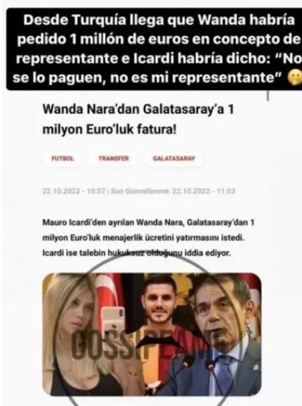 De este modo, la cuenta Gossipeame, que se dedica a dar información sobre los famosos vía Instagram, reveló que Mauro habría pedido en su club, Galatasaray, que no le paguen a Wanda.