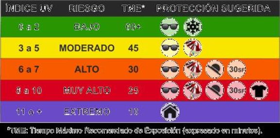 Una tabla desarrollada por el servicio divide la cantidad de UV en escalas: