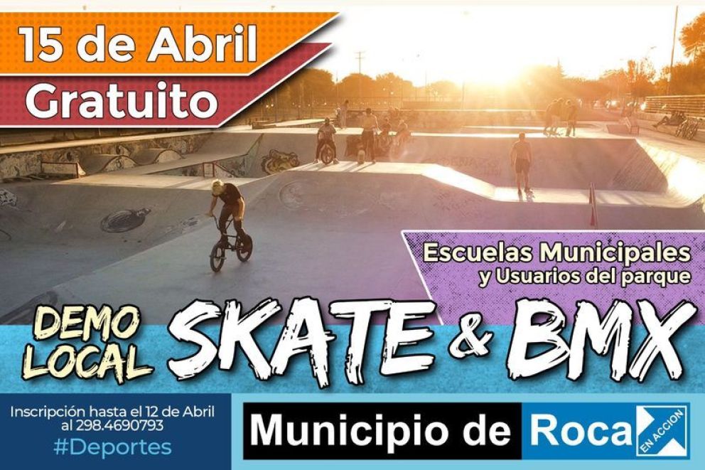 La actividad se realizará el sábado 15 de abril, en el Skate Park de Roca.