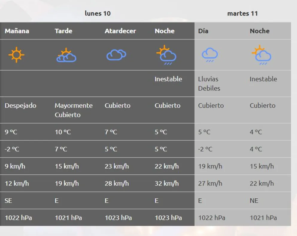 A principios de la próxima semana, ingreso de aire polar con viento del sur. Probables heladas fuertes. Inestabilidad para el día martes.