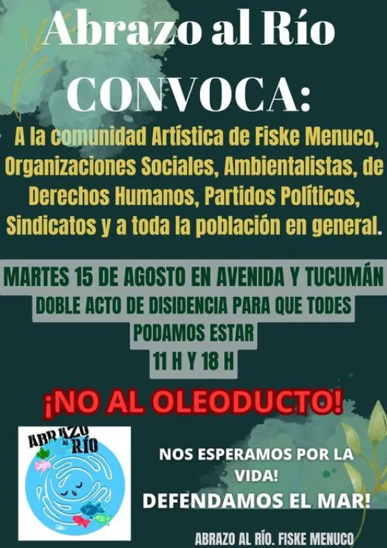 Bajo el lema ¡No al oleoducto!, el colectivo Abrazo al Río convoca a la comunidad a participar de los actos que se realizarán en Roca, y que tienen como fin concientizar sobre la importancia de cuidar el medio ambiente.