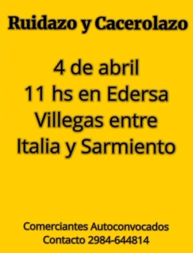 Ante los incesantes aumentos en las tarifas de energía que castigan a comerciantes y trabajadores de PYMES en Roca, un grupo de comerciantes autoconvocados de la ciudad han decidido llevar a cabo una protesta para mañana, 4 de abril a la 11:00 horas.