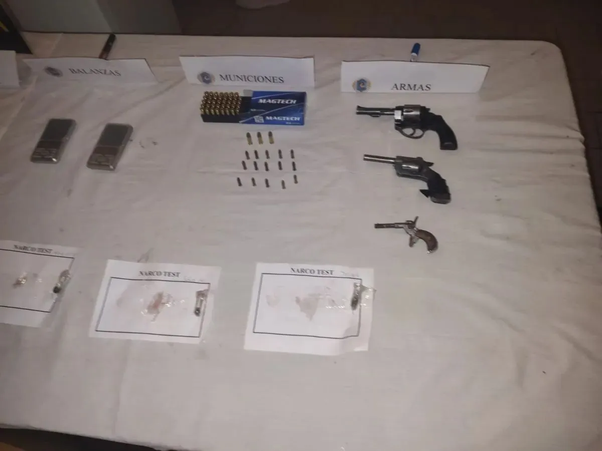 En el lugar también se hallaron plantas en proceso de secado, cogollos y otros elementos de interés para la causa, así como cocaína, balanzas de precisión y teléfonos celulares. Además, en el domicilio se descubrieron armas y municiones, cuyo valor rondaría los 60 millones de pesos.