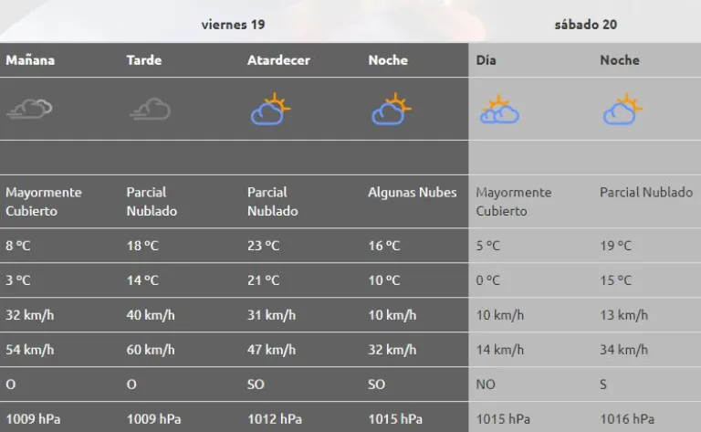 TIEMPO BUENO SOLEADO ASCENSO DE LA TEMPERATURA. UN DÍA OTOÑAL AGRADABLE EN TODA LA REGIÓN. EL VIERNES INESTABLE EN CORDILLERA CON LLUVIAS Y ALGUNAS NEVADAS. DESCENSO DE LA TEMPERATURA CON VIENTOS DEL OESTE EN VALLES MESETA Y COSTA. DÍAS FRESCOS EL FIN DE SEMANA. INESTABLE Y FRÍO EL LUNES.