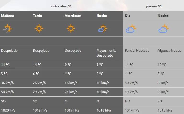 Miércoles periodos de vientos moderados y descenso de la temperatura. Para cordillera, continua las precipitaciones y nevadas débiles.