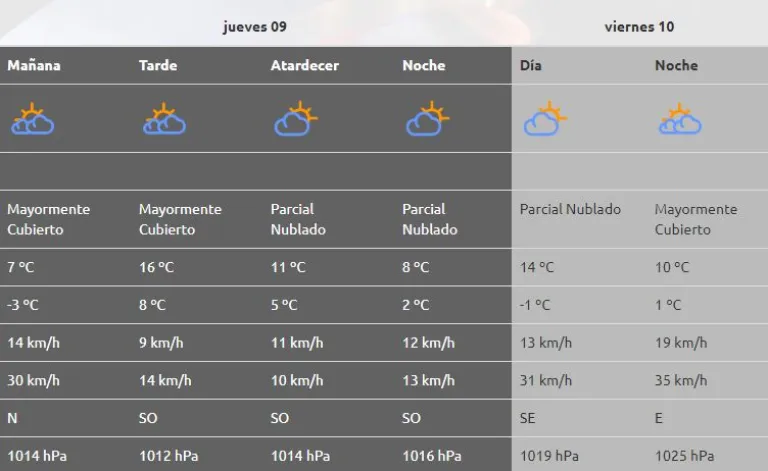 Los próximos días se presentan con leve ascenso de la temperatura y mañanas frías. El fin de semana frio con periodos de inestabilidad. En cordillera, lluvias débiles con nevadas, a partir del viernes mejoran las condiciones.