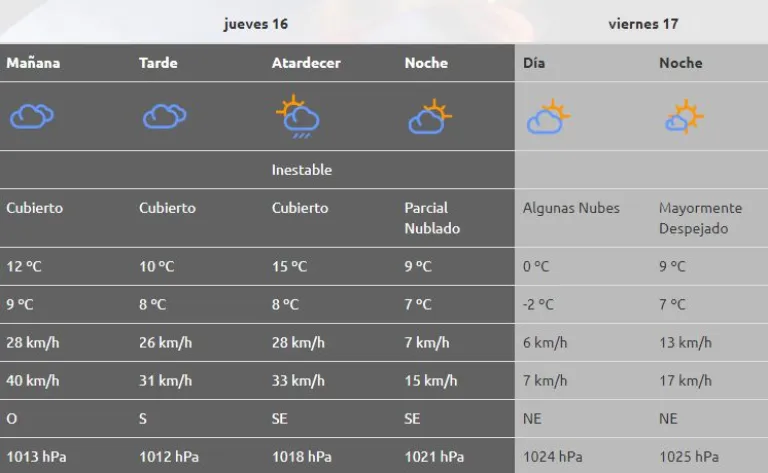 FRÍO SOLEADO CON HELADAS EN TODA LA REGIÓN. AIRE HÚMEDO HACIA LA NOCHE CON PROBABILIDAD DE LLUVIAS EN VALLES MESETA. INESTABLE EN LA COSTA. ASCENSO DE LA TEMPERATURA . TIEMPO BUENO LOS PRÓXIMOS DÍAS, DURANTE EL FIN DE SEMANA Y LA PRÓXIMA LLUVIAS Y NEVADAS EN TODA LA CORDILLERA