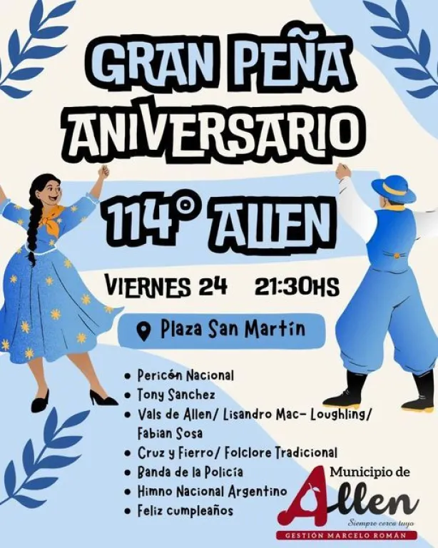La localidad vecina de Allen cumple años 114 años, junto a una de las fechas patrias argentinas mas importante: el 25 de mayo, día en que también se celebra un nuevo aniversario de la Revolución de Mayo.