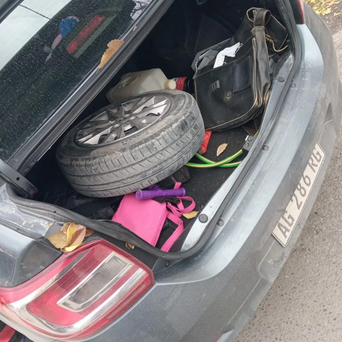 Al realizar la identificación del mismo, se constató que en la parte trasera estaba la respectiva llanta original y tapa. Al consultarle al ciudadano la procedencia de dicho elemento, manifestó que se la sustrajo a un vehículo que estaba estacionado, porque la tenía encargada. Hasta el lugar arribó Gabinete Criminalística a fines de realizar diligencias correspondientes.