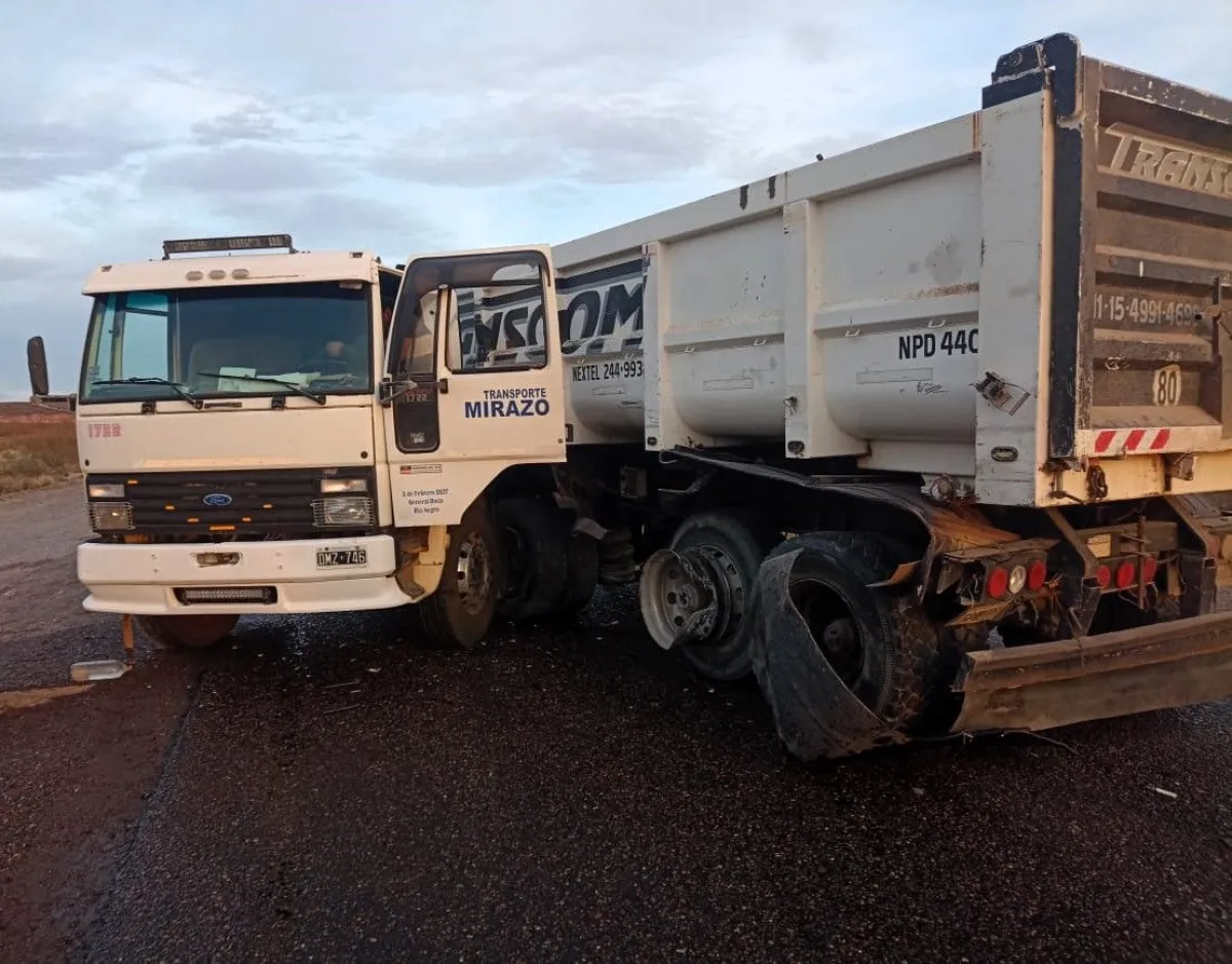 El incidente involucró a un camión con batea dedicado al transporte de arena y a otro con tanque, ambos impactando sobre el tendido asfáltico de la Ruta provincial.