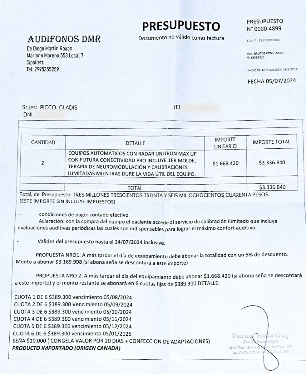 Fotos del presupuesto del tratamiento, gentileza de Abril.