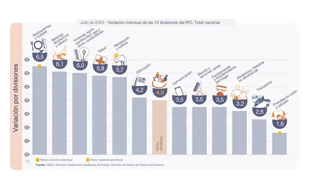 La inflación de julio alcanzó el 4% y acumuló 87% en lo que va del 2024