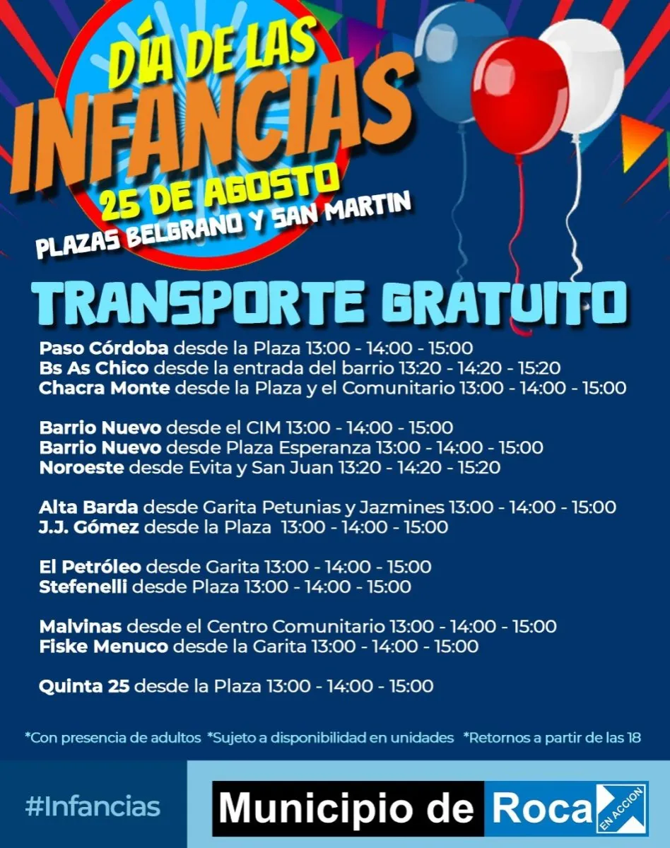 La novedad es que habrá colectivos gratis desde y hacia los barrios para que todas las familias roquenses puedan acercarse al centro a participar de esta propuesta diferente.