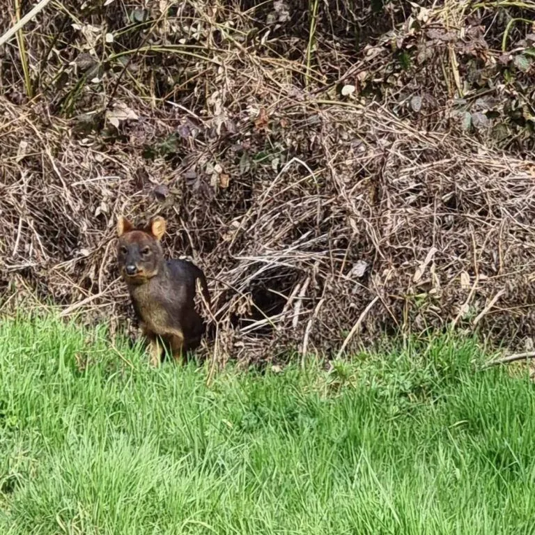 Un vecino de la Comarca Andina pudo avistar un ejemplar de pudú pudú, el ciervo más pequeño del mundo, en el paraje Entre Ríos, ubicado entre El Bolsón y Lago Puelo, cerca de la escuela 109. El vecino pudo disfrutar de la presencia del diminuto cérvido durante varios minutos.