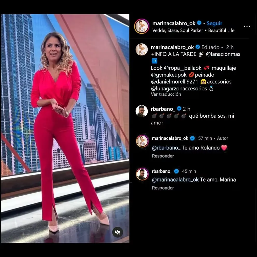 En una publicación compartida por Calabró en su cuenta de Instagram, Barbano no tardó en comentar: 'Que bomba sos mi amor'. Marina contestó sin dudarlo con un expresivo 'Te amo Rolando.' Esta interacción sugiere que, tras los altibajos, la pareja ha encontrado una estabilidad, uniendo fuerzas y compartiendo momentos tanto laborales como personales.