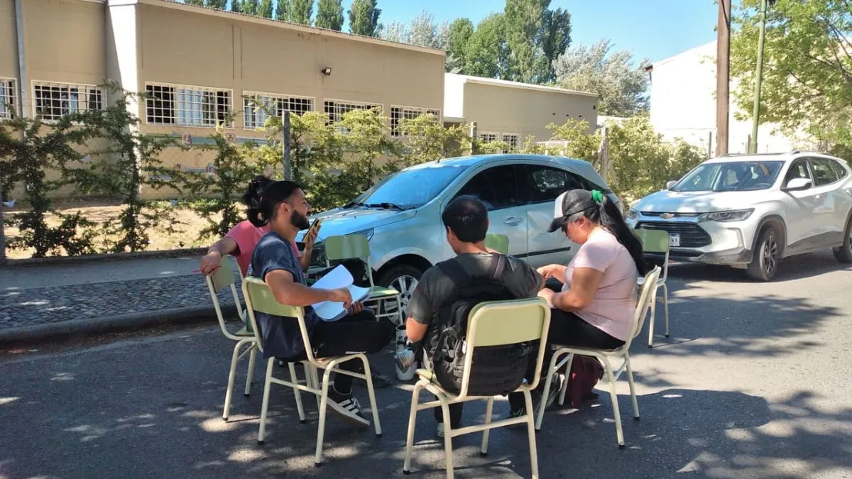 En estos momentos, la calle Gelonch permanece cortada por estudiantes del Instituto Universitario Patagónico de las Artes (IUPA), quienes llevan a cabo clases públicas.