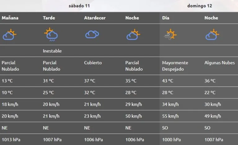 El calor va en aumento y para mañana domingo tendríamos una máxima de 43°con un cielo mayormente despejado. A eso, hay que sumarle que el viento estará muy presente.
