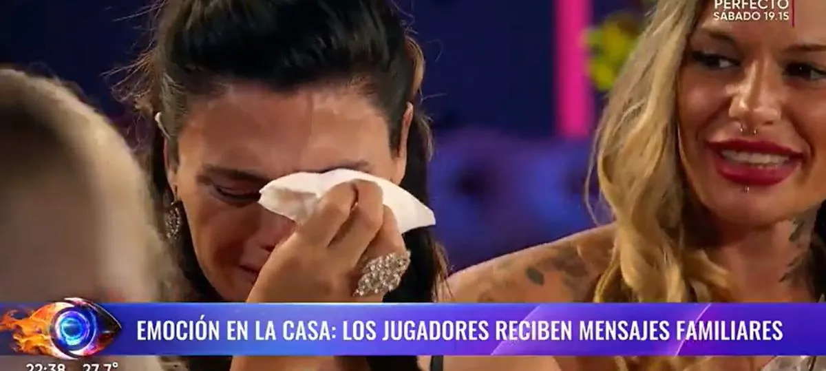 La participante no aguantó la emoción en la noche del jueves cuando Santiago del Moro llevó mensajes de los familiares.