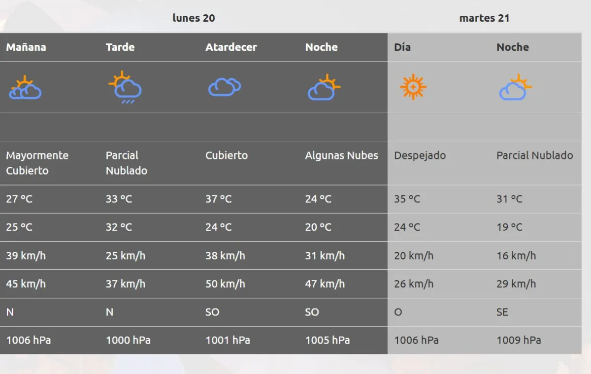 Además, en horas de la tarde vuelve el viento y se van a registrar intensas ráfagas de hasta 50 km/h.