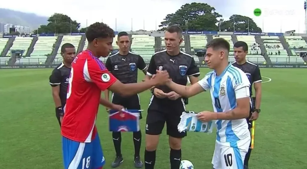 Bajo la conducción táctica del entrenador Diego Placente, la "Albiceleste" demostró superioridad desde el inicio del partido. Fue Ian Subiabre quien abrió el marcador a los 35 minutos tras una incisiva jugada de Claudio Echeverri. Echeverri, conocido por sus destrezas técnicas, avanzó por el sector izquierdo para luego asistir a Subiabre, quien remató con precisión al palo cruzado, dejando sin opción al arquero chileno Ignacio Sáez.