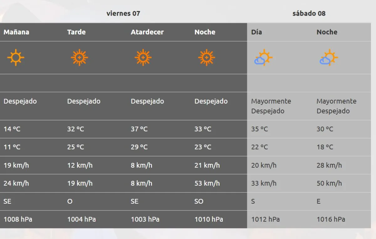 Para este viernes se espera una mínima de 11° C y una máxima de 37 °C.