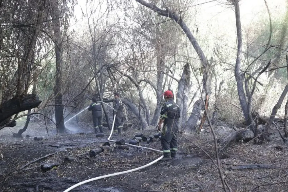 En El Raquel, 26 combatientes trabajan sobre los puntos calientes para reforzar las líneas de control y enfriar las zonas afectadas. Allí el terreno es complejo y la escasez de agua hace que el combate sea más lento.