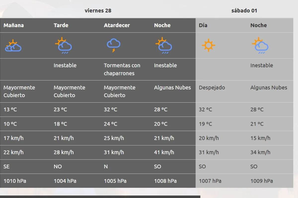 Este viernes se mantendrán las condiciones de humedad en el aire, con aumento de la inestabilidad y formación de tormentas en valles, mesetas y la zona de costa.
