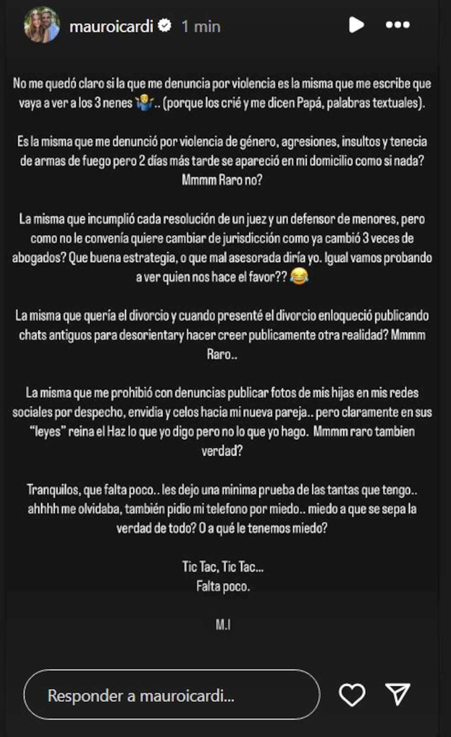 Por su parte, Mauro Icardi, delantero del Galatasaray, manifestó su descontento inmediatamente a través de sus redes sociales, utilizando sus plataformas para responder a lo que considera acusaciones infundadas. En una serie de mensajes compartidos en Instagram, Icardi cuestionó tanto los motivos de las denuncias como las acciones legales emprendidas por su exesposa. Empleando un tono que osciló entre lo irónico y lo acusatorio, resaltó ciertas incongruencias observadas en las declaraciones de Wanda.