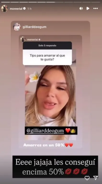 En una de sus publicaciones, Morena abrió una caja de preguntas para interactuar con sus más de un millón de seguidores. Fue entonces cuando una usuaria le pidió consejos para "amarrar al que le gusta". Morena, con la sinceridad que la caracteriza, respondió de manera directa: "Que esté en religión no significa que yo haga trabajos".