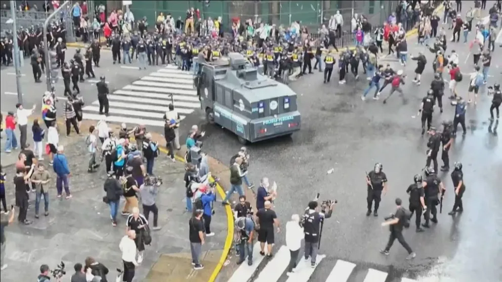 Desde la perspectiva gubernamental, estos grupos de 'barras bravas' no habrían acudido a dicha movilización por casualidad. Se destaca cómo desde el instante en que ingresaron a la zona del Congreso Nacional, comenzaron con agresiones directas a las Fuerzas de Seguridad, empleando empujones, golpes, piedras, armas blancas e incluso, según la denuncia, armas de fuego. Los altercados además dejaron una secuela de daños materiales significativos, incluyendo el incendio de objetos públicos, vehículos policiales y patrulleros.