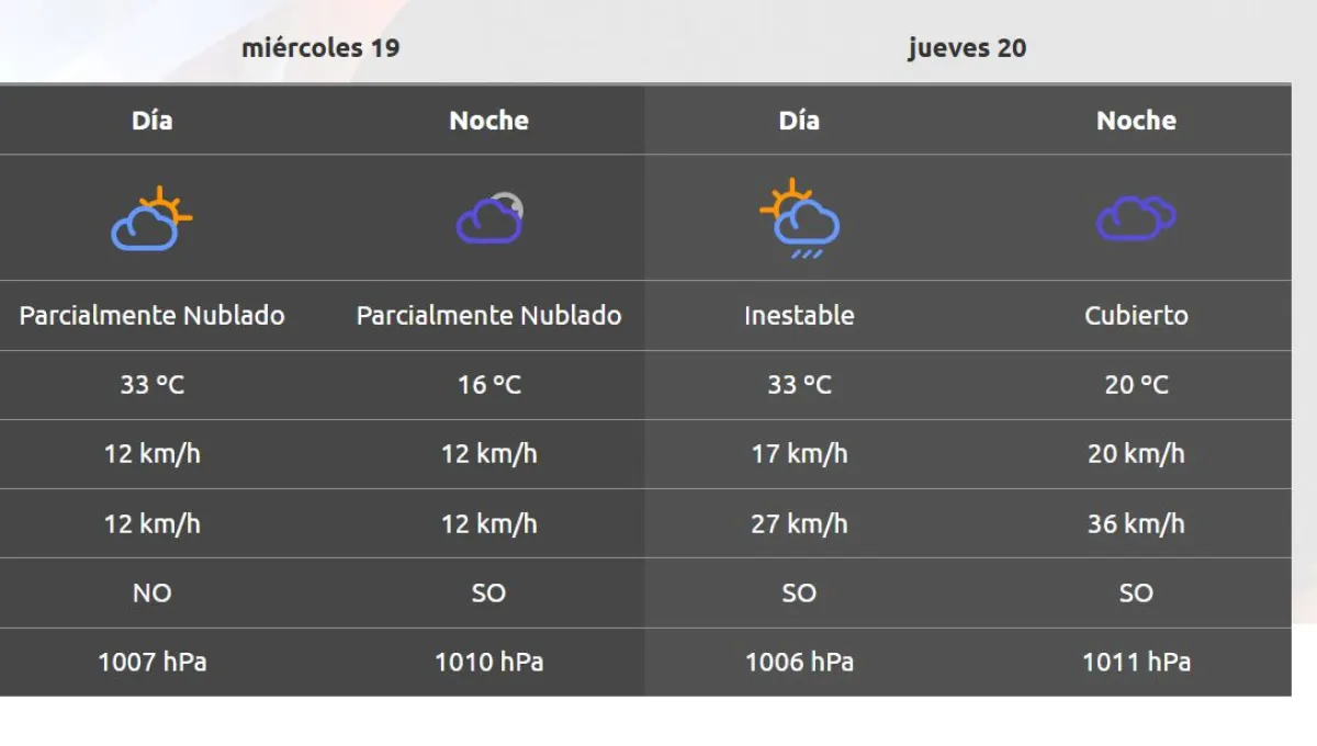 La Autoridad Interjurisdiccional de Cuencas emitió su pronóstico para este miércoles 19 de marzo y el extendido para la semana. Para hoy se espera una mínima de 16° C y una máxima de 33° C.