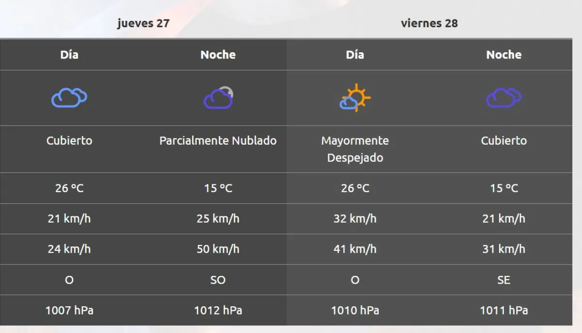 Para hoy se espera una mínima de 15° C y una máxima de 26° C.