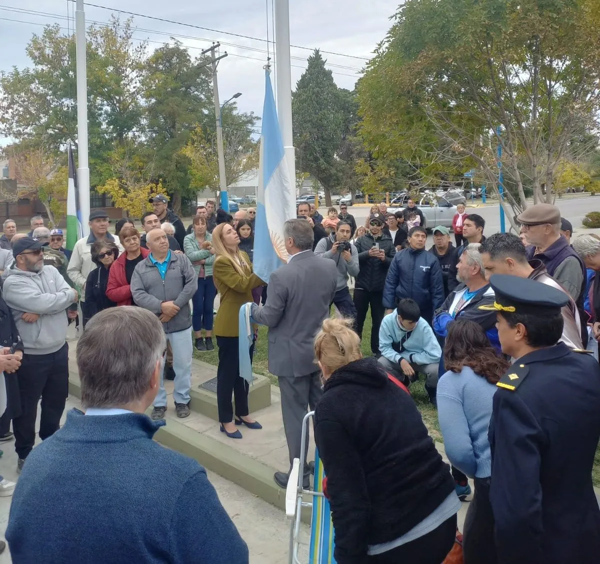 En su intervención, Flores se mostró crítico con la dirigencia política al señalar la falta de avances en la defensa de la soberanía sobre las Malvinas. "Seguimos con la falta de patriotismo de nuestros gobernantes", afirmó. También se refirió al fortalecimiento de las Fuerzas Armadas impulsado por el gobierno nacional, aunque con una advertencia: "Que sea para defender nuestros recursos, no para reprimir al pueblo". Su discurso finalizó con un emotivo "¡Viva la Patria!", acompañado del aplauso de los presentes.