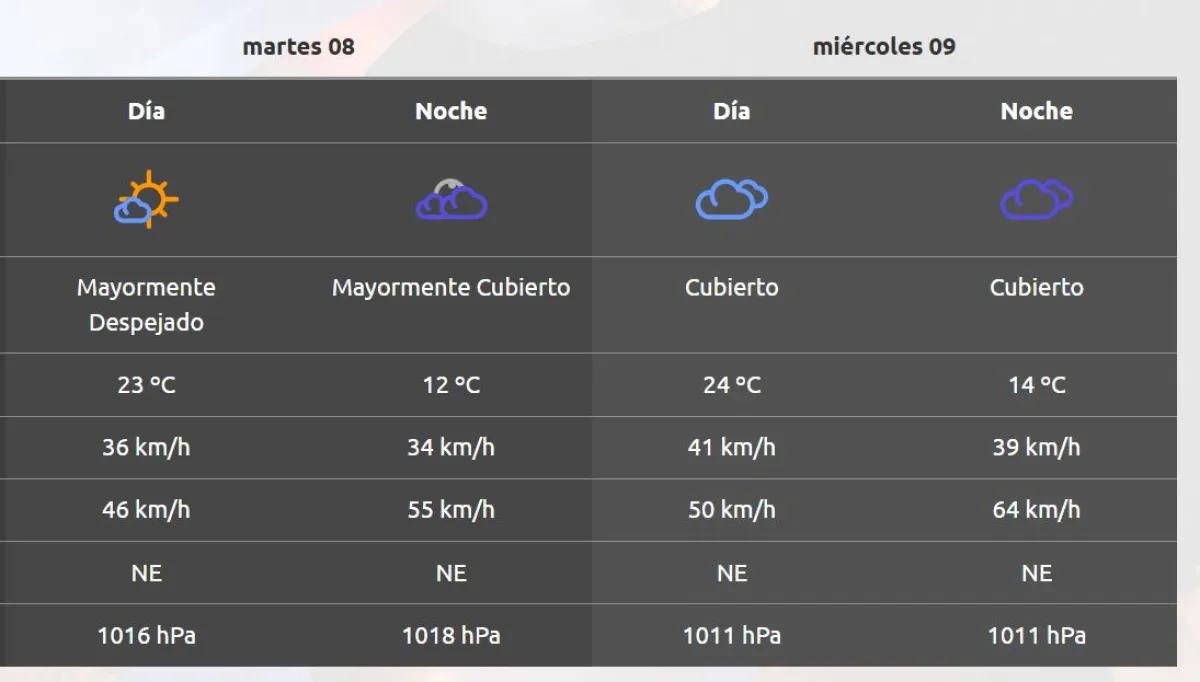 Según la Autoridad Interjurisdiccional Cuencas (AIC), la máxima rondará los 23 grados durante el día mientras que en la noche, caerá a 12 grados. Se estima que durante la tarde las ráfagas de viento alcanzarán los 55 km/h.