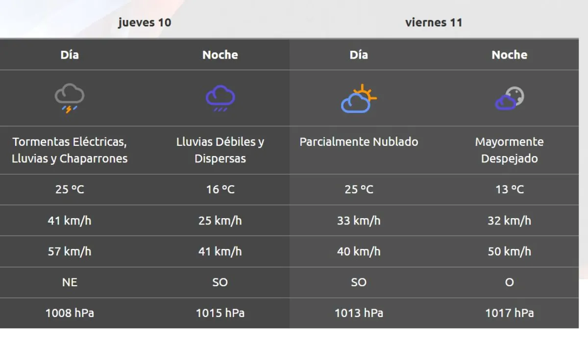 El Servicio Meteorológico Nacional (SMN) emitió una alerta amarilla por tormentas y posible caída de granizo en el departamento de General Roca. Según el ente nacional, durante la tarde-noche del jueves podría registrarse una abundante caída de agua en cortos periodos.