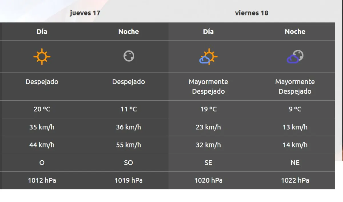 Tras un comienzo de semana lluvioso y frío, se espera un cambio abrupto de las temperaturas en la región. Durante los próximos días se va a registrar una rotación en los vientos hacia el oeste, lo que provocará períodos ventosos sobre valles y mesetas.