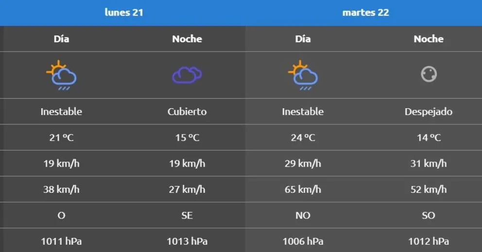 La Autoridad Interjurisdiccional de Cuencas (AIC) también pronosticó periodos ventosos. Este lunes, las ráfagas de viento rondará los 40 kilómetros por hora mientras que la temperatura máxima llegará a los 21 grados durante el día y en 15 grados, por la noche. Cielo cubierto.