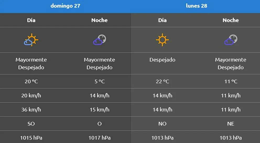 Para hoy se espera una mínima de 5° C y una máxima de 20° C.