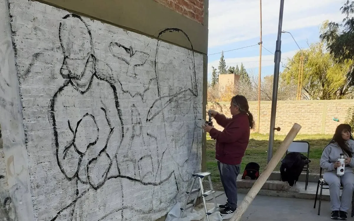 El emotivo mural realizado por estudiantes de la ESRN 43