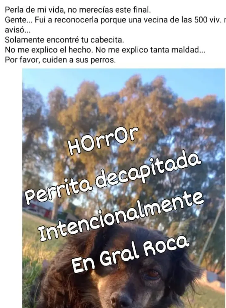 Una perra que era cuidada por los vecinos desapareció y a los días, fue hallada su cabeza.