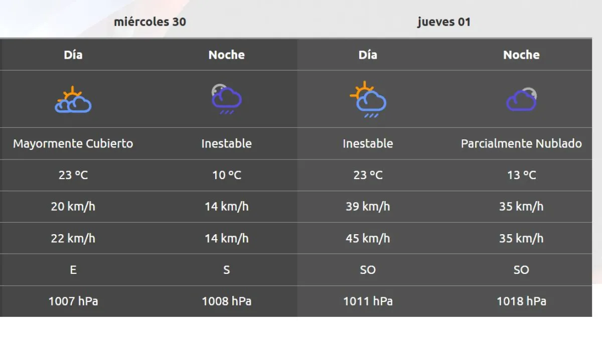 La Autoridad Interjurisdiccional de Cuencas emitió su pronóstico para este miércoles 30 de abril y el extendido para la semana. Para hoy se espera una mínima de 10° C y una máxima de 23° C.
