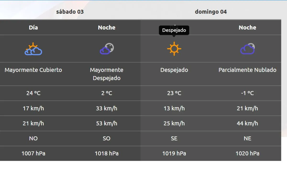 Clima: tendremos un sábado helado y un domingo con temperaturas bajo cero