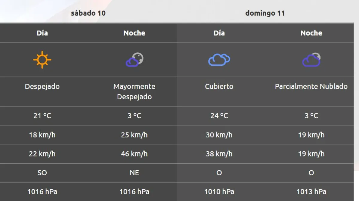 La Autoridad Interjurisdiccional de Cuencas emitió su pronóstico extendido para este finde semana. Para hoy se espera una mínima de 3° C y una máxima de 21° C.