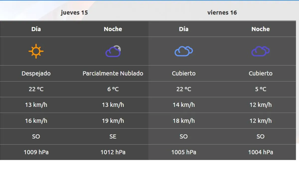 Hacia el sábado cambia el tiempo, con periodos de vientos moderados. Sin embargo, el domingo nuevamente habrá un descenso de la temperatura, con una mínima que rozará 1 grado.