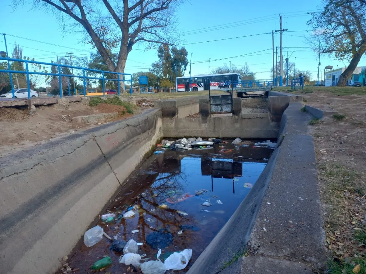 Uno de los puntos más afectados es el canalito de calle San Juan, entre Isidro Lobo e Yrigoyen, donde la basura se amontona entre los márgenes donde se encuentran las compuertas. A simple vista, se observan envases plásticos, residuos domiciliarios y hasta escombros. Situaciones similares se registran en el canal que cruza calle Mendoza hacia Ruta 22, y en el derivador paralelo a la Ruta Nacional 22, en la intersección con Avenida Roca.