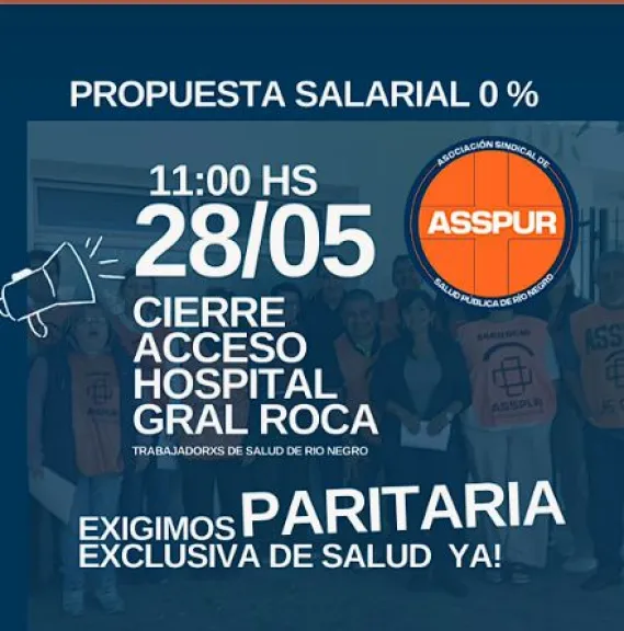 La medida consistirá en el cierre del acceso al Hospital General Roca, previsto para las 11:00 horas, y estará acompañada por movilizaciones en otros hospitales de la provincia. La jornada de protesta se realizará bajo la consigna: “Propuesta salarial 0%. Exigimos condiciones laborales dignas y respeto a nuestros derechos”.