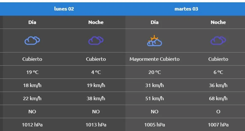 En las primeras horas del día, el termómetro marcará entre 5 y 8 grados. A partir del mediodía, la temperartura máxima rondará los 20 grados. El cielo se mantedrá completamento cubierto y recién en la madrugada del martes, comenzará a despejarse.